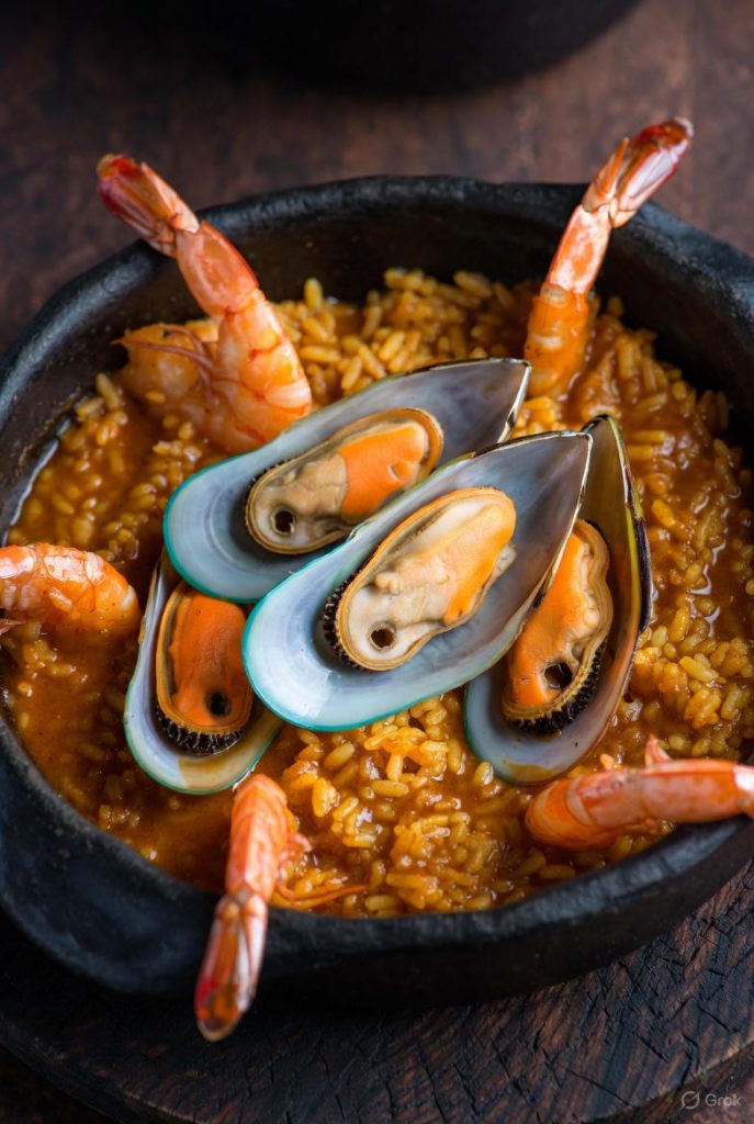 Arroz caldoso con mariscos como en El Sevillanito Alaquàs: gambones, mejillones y azafrán. Receta fácil en 8 pasos + 3 tips del chef. ¡Sabor a mar!